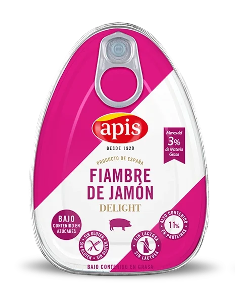Carne de pavo (50%), agua, fécula de patata, sal, gelatina, azúcar, antioxidante (E-300), estabilizantes (E-450iii, E-451i, E-407, E-410), especias, aromas y conservador (E-250).